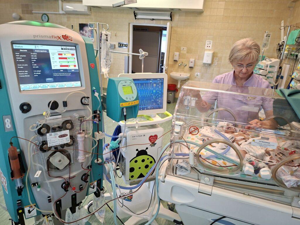 Pojawiły się kolejne powikłania. Noworodek przestał oddawać mocz, co świadczyło o niewydolności nerek. Konieczne było podłączenie do sztucznej nerki. Po około półtorej doby udało się przywrócić ich funkcjonowanie i zakończyć terapię.