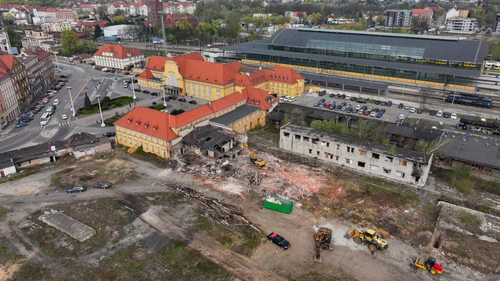 Rozpoczęło się wyburzanie zdegradowanych obiektów w ścisłym centrum Legnicy, w bezpośrednim sąsiedztwie dworca kolejowego. Miejsce, które przez lata uchodziło za wizytówkę wstydu miasta, znika z mapy.