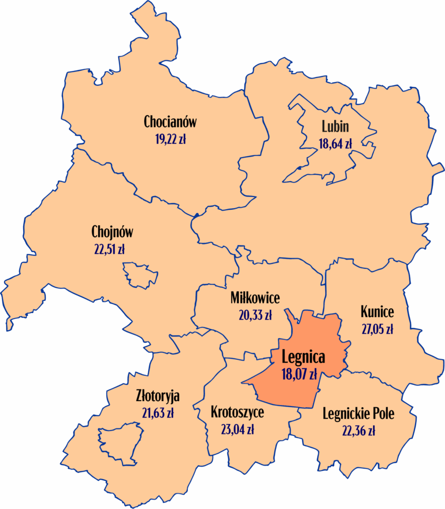 koszty i szukamy dodatkowych zleceń, tak aby obciążenie dla mieszkańców było jak najniższe. Inwestycje rozwojowe są finansowane głównie ze środków zewnętrznych, w tym z Unii Europejskiej. Co ważne, mimo zmiany taryfy ceny w Legnicy nadal należą do najniższych w regionie (na grafice mapa cen w regionie). Naszym celem jest zapewnienie mieszkańcom stabilnych i bezpiecznych usług na lata” – pisze prezes LPWiK.
